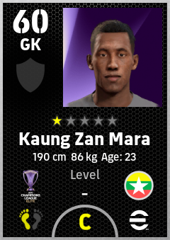 . Kaung Zan Mara is a Goalkeeper footballer from Myanmar who plays for Fc Machida Zelvia in eFootball 2026.