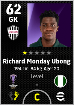 . Richard Monday Ubong is a Goalkeeper footballer from Nigeria who plays for Vissel Kobe in eFootball 2026.