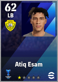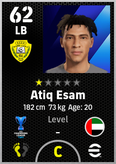 . Atiq Esam is a Left Back footballer from United Arab Emirates who plays for Al Wasl Fc in eFootball 2026.