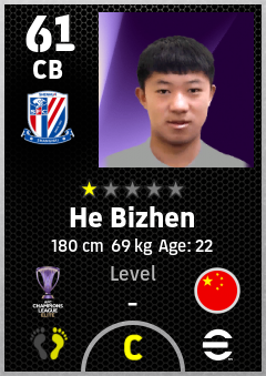 . He Bizhen is a Center Back footballer from China Pr who plays for Shanghai Shenhua Fc in eFootball 2026.