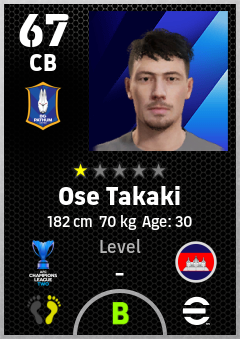 . Ose Takaki is a Center Back footballer from Cambodia who plays for Bg Pathum United Fc in eFootball 2026.