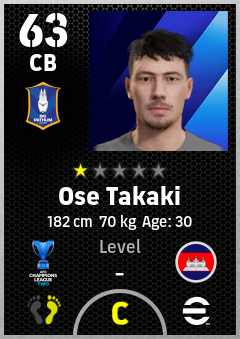 Ose Takaki is a Center Back footballer from Cambodia who plays for Bg Pathum United Fc in eFootball 2026.