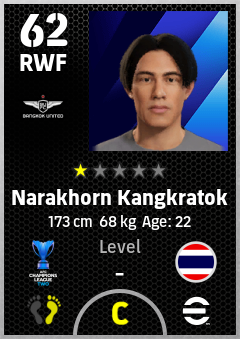 Narakhorn Kangkratok is a Right Wing Forward footballer from Thailand who plays for True Bangkok United Fc in eFootball 2026.