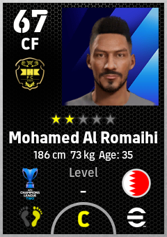. Mohamed Al Romaihi is a Center Forward footballer from Bahrain who plays for Al Khaldiya Sc in eFootball 2026.