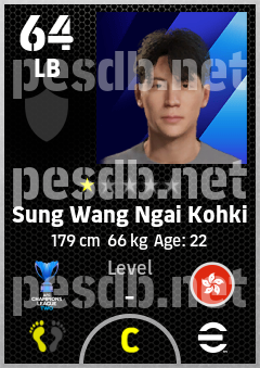 . Sung Wang Ngai Kohki is a Left Back footballer from Hong Kong, China who plays for Tai Po Fc in eFootball 2026.
