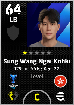. Sung Wang Ngai Kohki is a Left Back footballer from Hong Kong, China who plays for Tai Po Fc in eFootball 2026.
