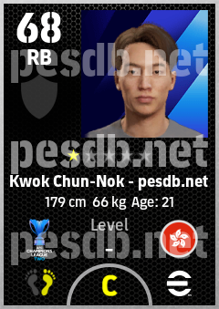 . Kwok Chun-Nok is a Right Back footballer from Hong Kong, China who plays for Tai Po Fc in eFootball 2026.
