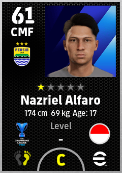 . Nazriel Alfaro is a Center Midfielder footballer from Indonesia who plays for Persib Bandung in eFootball 2026.