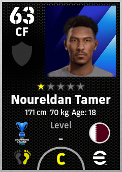 . Noureldan Tamer is a Center Forward footballer from Qatar who plays for Al Ahli Sc in eFootball 2026.