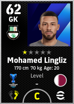 . Mohamed Lingliz is a Goalkeeper footballer from Qatar who plays for Al Ahli Sc in eFootball 2026.