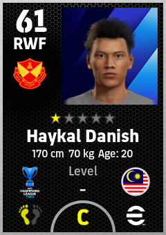 . Haykal Danish is a Right Wing Forward footballer from Malaysia who plays for Selangor Fc in eFootball 2026.