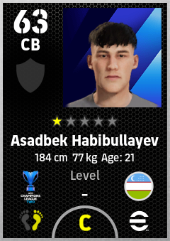 . Asadbek Habibullayev is a Center Back footballer from Uzbekistan who plays for Fc Andijan in eFootball 2026.