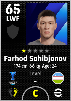 . Farhod Sohibjonov is a Left Wing Forward footballer from Uzbekistan who plays for Fc Andijan in eFootball 2026.