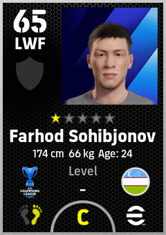. Farhod Sohibjonov is a Left Wing Forward footballer from Uzbekistan who plays for Fc Andijan in eFootball 2026.