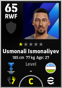 . Usmonali Ismonaliyev is a Right Wing Forward footballer from Uzbekistan who plays for Fc Andijan in eFootball 2026.
