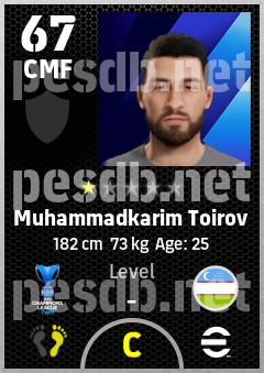 . Muhammadkarim Toirov is a Center Midfielder footballer from Uzbekistan who plays for Fc Andijan in eFootball 2026.