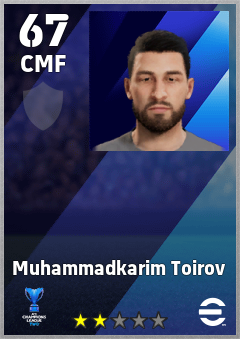 . Muhammadkarim Toirov is a Center Midfielder footballer from Uzbekistan who plays for Fc Andijan in eFootball 2026.