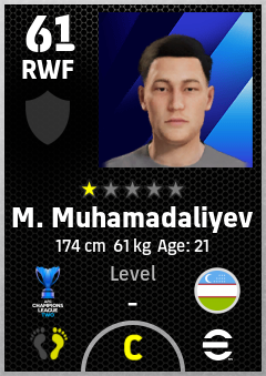 . M. Muhamadaliyev is a Right Wing Forward footballer from Uzbekistan who plays for Fc Andijan in eFootball 2026.