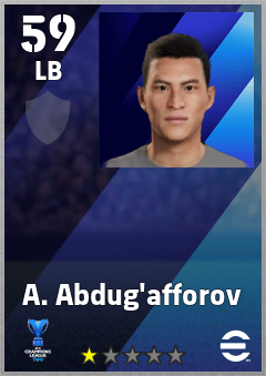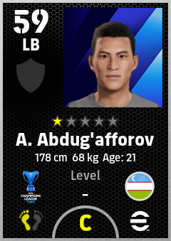 . A. Abdug'afforov is a Left Back footballer from Uzbekistan who plays for Fc Andijan in eFootball 2026.