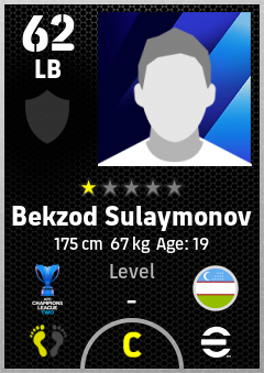 . Bekzod Sulaymonov is a Left Back footballer from Uzbekistan who plays for Fc Andijan in eFootball 2026.