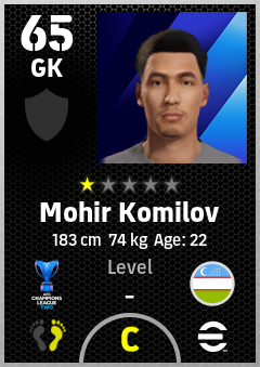 . Mohir Komilov is a Goalkeeper footballer from Uzbekistan who plays for Fc Andijan in eFootball 2026.
