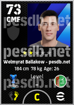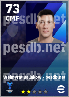 . Welmyrat Ballakow is a Center Midfielder footballer from Turkmenistan who plays for Arkadag Fk in eFootball 2026.