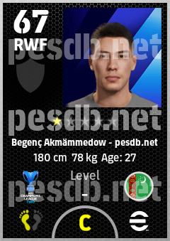 . Begenç Akmämmedow is a Right Wing Forward footballer from Turkmenistan who plays for Arkadag Fk in eFootball 2026.