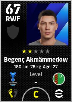 . Begenç Akmämmedow is a Right Wing Forward footballer from Turkmenistan who plays for Arkadag Fk in eFootball 2026.