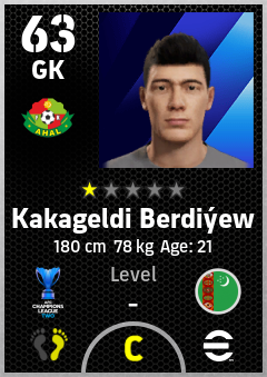 . Kakageldi Berdiýew is a Goalkeeper footballer from Turkmenistan who plays for Ahal Fc in eFootball 2026.