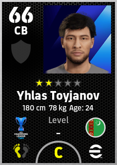 . Yhlas Toyjanov is a Center Back footballer from Turkmenistan who plays for Arkadag Fk in eFootball 2026.