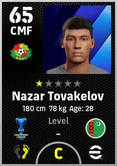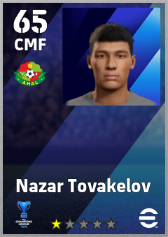 . Nazar Tovakelov is a Center Midfielder footballer from Turkmenistan who plays for Ahal Fc in eFootball 2026.