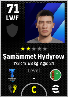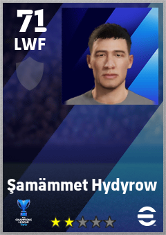 . Şamämmet Hydyrow is a Left Wing Forward footballer from Turkmenistan who plays for Arkadag Fk in eFootball 2026.