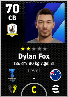 . Dylan Fox is a Center Back footballer from Australia who plays for Tampines Rovers Fc in eFootball 2026.