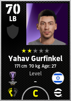 . Yahav Gurfinkel is a Left Back footballer from Israel who plays for Chengdu Rongcheng Fc in eFootball 2026.