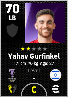 . Yahav Gurfinkel is a Left Back footballer from Israel who plays for Chengdu Rongcheng Fc in eFootball 2026.