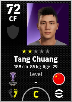 . Tang Chuang is a Center Forward footballer from China Pr who plays for Chengdu Rongcheng Fc in eFootball 2026.