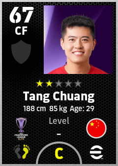. Tang Chuang is a Center Forward footballer from China Pr who plays for Chengdu Rongcheng Fc in eFootball 2026.