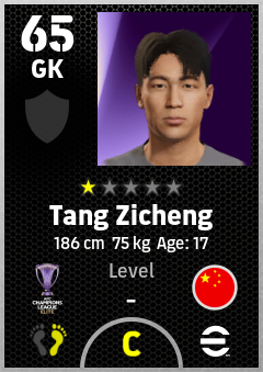 . Tang Zicheng is a Goalkeeper footballer from China Pr who plays for Chengdu Rongcheng Fc in eFootball 2026.