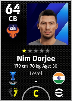 . Nim Dorjee is a Center Back footballer from India who plays for Fc Goa in eFootball 2026.