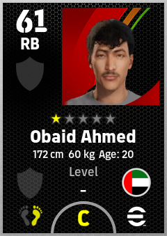. Obaid Ahmed is a Right Back footballer from United Arab Emirates who plays for Free in eFootball 2026.