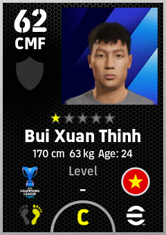 . Bui Xuan Thinh is a Center Midfielder footballer from Vietnam who plays for Cong An Hanoi Fc in eFootball 2026.
