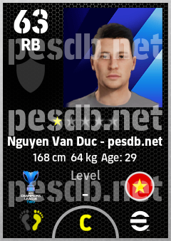 . Nguyen Van Duc is a Right Back footballer from Vietnam who plays for Cong An Hanoi Fc in eFootball 2026.