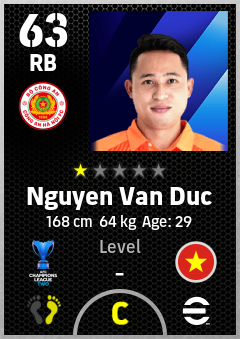 . Nguyen Van Duc is a Right Back footballer from Vietnam who plays for Cong An Hanoi Fc in eFootball 2026.
