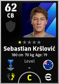 . Sebastian Kršlović is a Center Back footballer from Australia who plays for Macarthur Fc in eFootball 2026.