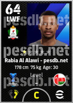. Rabia Al Alawi is a Left Wing Forward footballer from Oman who plays for Al Wehdat Sc in eFootball 2026.