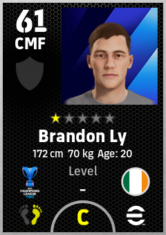 . Brandon Ly is a Center Midfielder footballer from Republic Of Ireland who plays for Cong An Hanoi Fc in eFootball 2026.