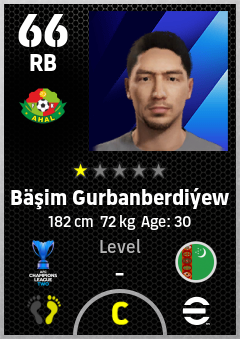 . Bäşim Gurbanberdiýew is a Right Back footballer from Turkmenistan who plays for Ahal Fc in eFootball 2026.