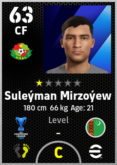 . Suleýman Mirzoýew is a Center Forward footballer from Turkmenistan who plays for Ahal Fc in eFootball 2026.