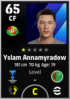 . Yslam Annamyradow is a Center Forward footballer from Turkmenistan who plays for Ahal Fc in eFootball 2026.