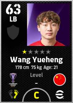 . Wang Yueheng is a Left Back footballer from China Pr who plays for Chengdu Rongcheng Fc in eFootball 2026.
